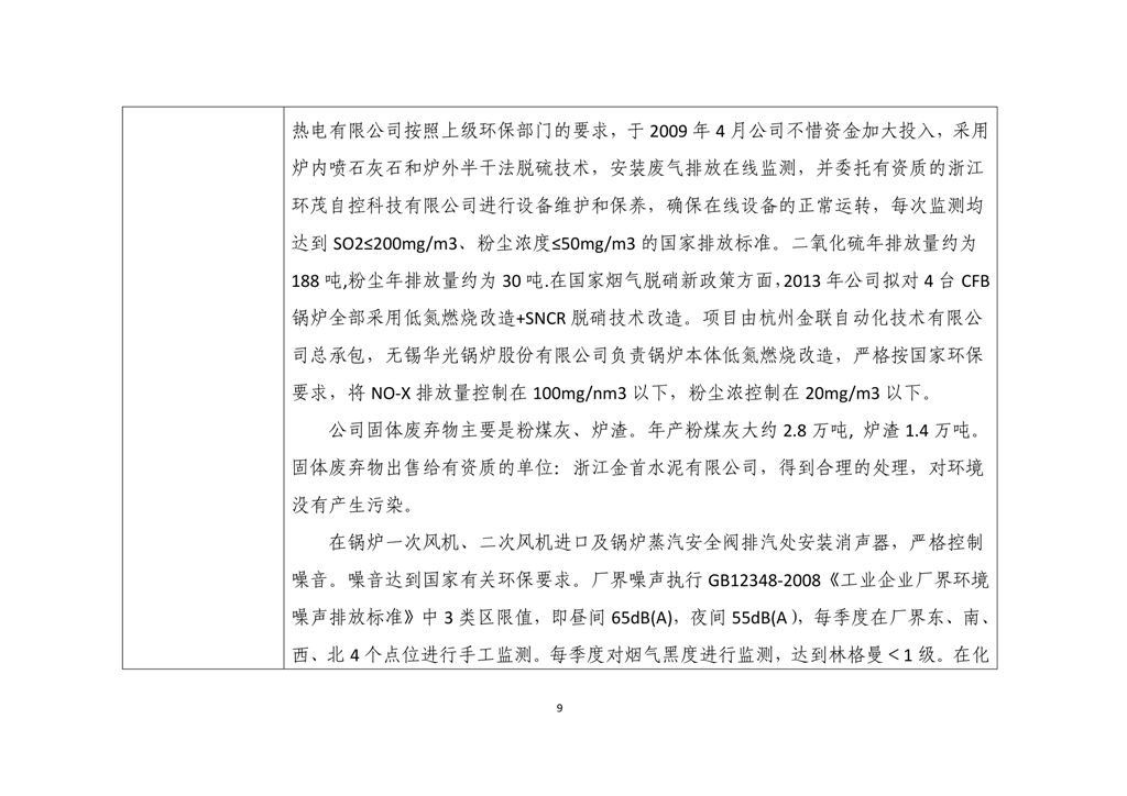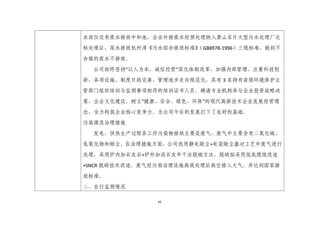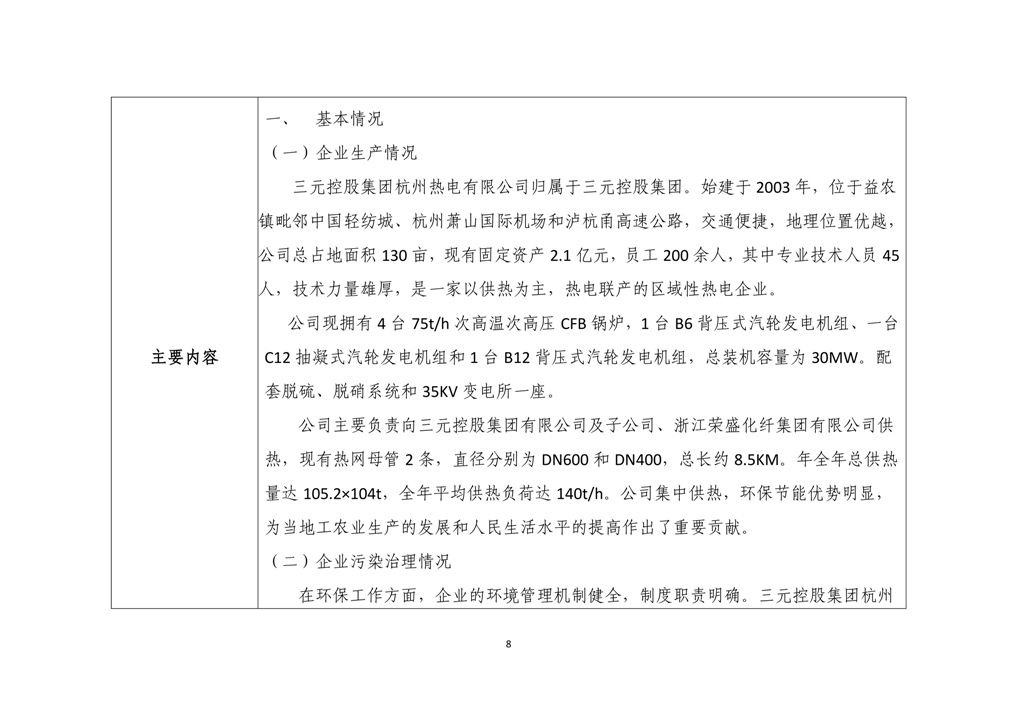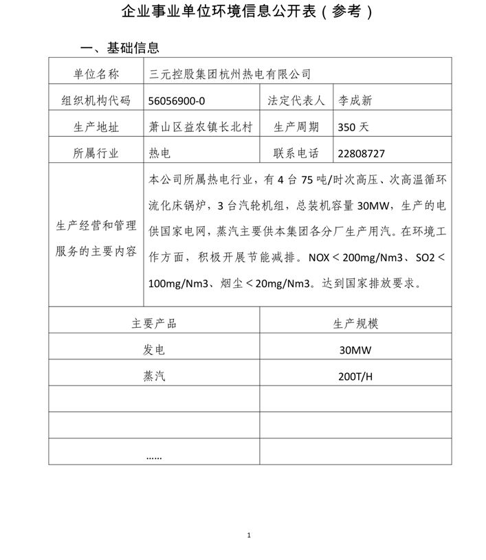 三元控股集團杭州熱電有限公司環境信息公開表