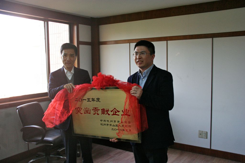 在三元控股集團會議室,區長盧春強向三元控股集團送上了“2015年度蕭山區突出貢獻企業”榮譽牌匾和慰問金,對企業為蕭山經濟社會發展作出的貢獻表示感謝,并與企業領導展開座談交流。集團董事長、總經理李斌向盧春強區長等領導匯報了企業當前生產經營和企業發展戰略的有關情況。李斌介紹到三元控股集團現在已經是一家以面料生產與銷售為主業,建有配套的污水處理中心和熱電廠,同時涉及服裝和新材料的大型企業集團,也是中國印染行業協會副會長單位。2015年三元控股集團主業實現工業總產值41.48億元,上交稅收1.62億元,出口創匯1.85億美元。李斌指出,公司在今后的發展中,將繼續向下游的紡織貿易、服裝生產與銷售環節延伸,繼續加大從來料加工向自主營銷轉變的力度,在轉型升級的同時,將企業盈利環節進一步由生產加工向自主品牌和銷售環節滲透。