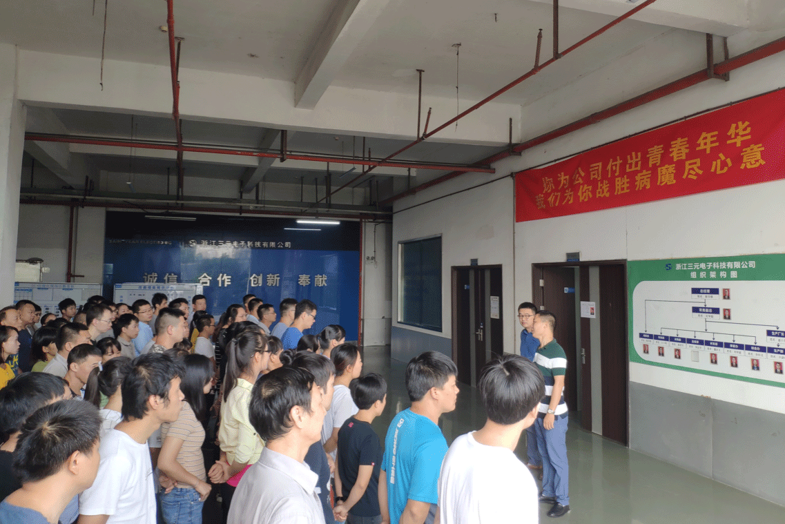 9月10日上午8點,浙江三元電子科技有限公司生產車間,公司副總經理劉學超,帶領公司員工對身患重病的付洪池進行了愛心募捐活動,共捐得善款46500多元。
