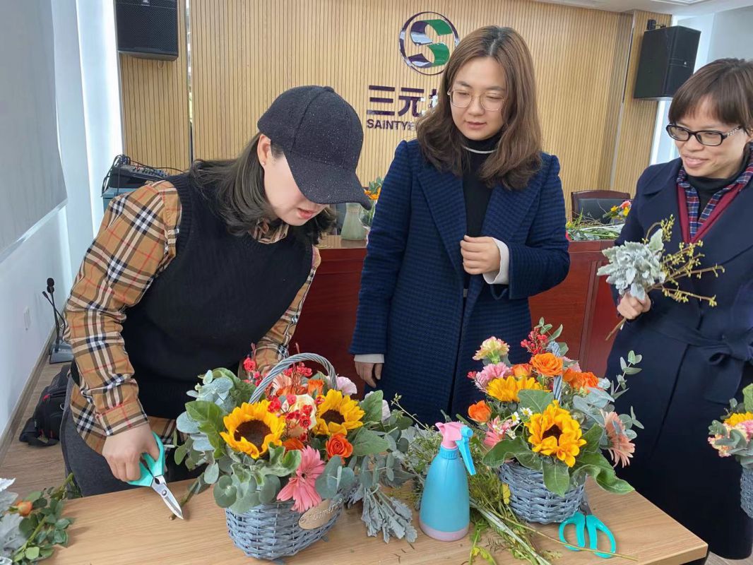 初春三月,乍暖還寒。3月4日下午,三元控股集團行政大樓501室成了歡樂的海洋,歡笑聲和掌聲此起彼伏。為慶祝國際婦女節,豐富女員工生活,展現巾幗半邊天風采,集團特邀請秋雨軒花藝師來我集團辦公樓501室舉辦插花培訓班,現場講授插花知識及指導女員工們動手學習插花技巧,展現女員工代表知性柔美的一面。